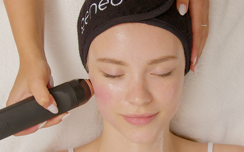 1回の施術で、①肌の引き締め②角質除去③酸素充足④美容液の浸透という4つのトリートメントを行うことができる美肌施術です。小じわやたるみ、くすみなどの改善、肌のハリやうるおいアップなど、複数の肌悩みにアプローチできます。痛みやダウンタイムがほとんどなく、マッサージ感覚で心地よく受けていただけます。