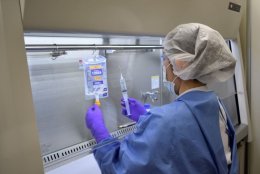また、調剤を行う無菌製剤室(ミキシングルーム)も併設。専門医の処方(化学療法レジメン)をもとに、専任の薬剤師がきめ細やかな安全管理を行っています。