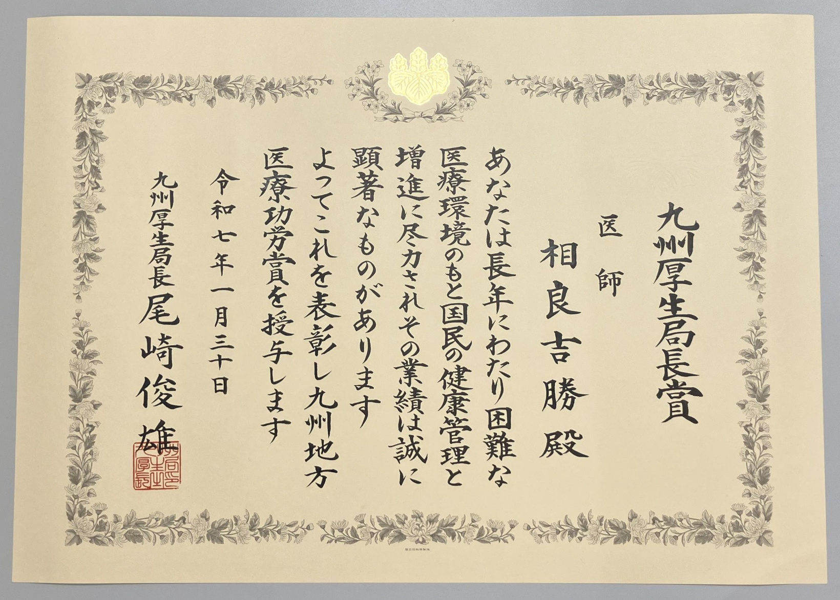 相良吉厚会長が「第53回医療功労賞 九州地方医療功労賞」を受賞いたしました。