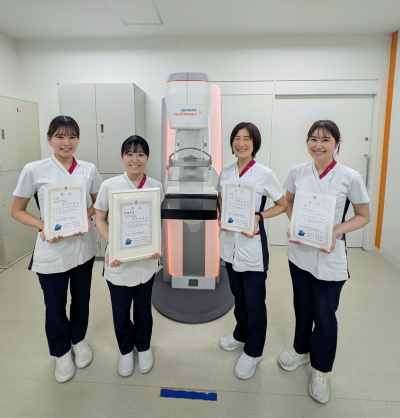 「マンモグラフィポジショニングコンテスト」は、マンモグラフィのポジショニングの技術向上を目的として毎年開催されています。今回は198名の応募があり、当院の診療放射線技師が、審査員最優秀賞・一般審査最優秀賞を受賞し、他4名が入賞いたしました。