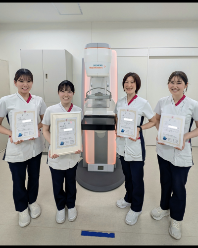 「マンモグラフィポジショニングコンテスト」は、マンモグラフィのポジショニングの技術向上を目的として毎年開催されています。今回は198名の応募があり、当院の診療放射線技師が、審査員最優秀賞・一般審査最優秀賞を受賞し、他3名が入賞いたしました。