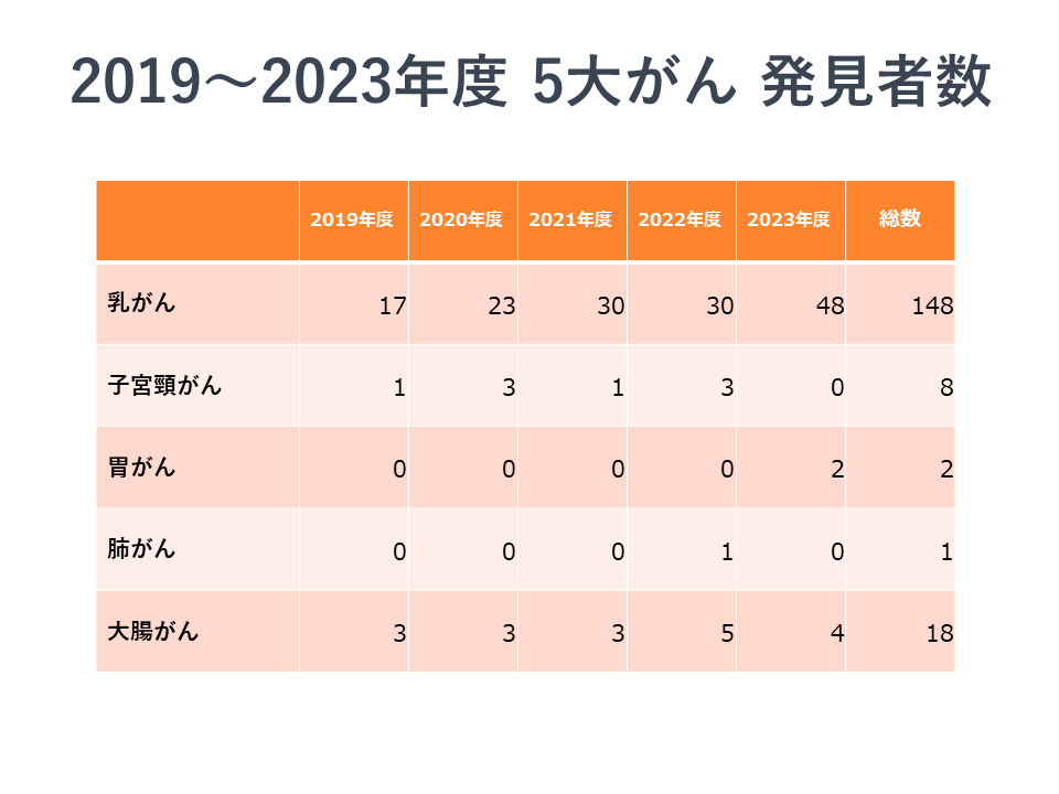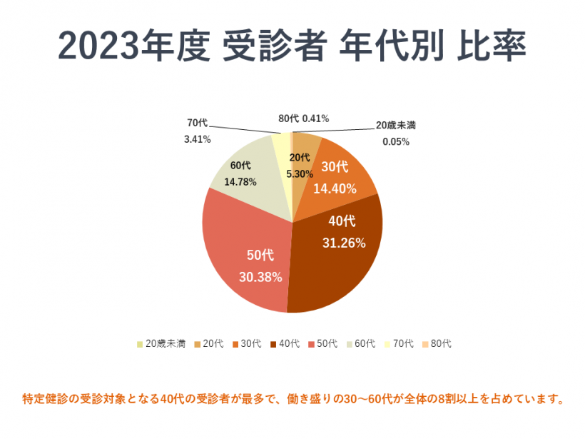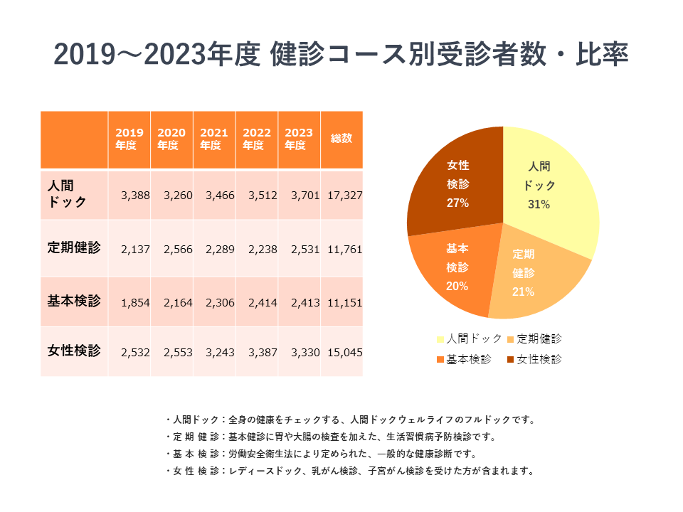 健診実績 人間ドックウェルライフ受診者数 2019~2023年度 延べ受診者数 受診者 年代別 比率 健診コース別 受診者数 比率 5大がん発見者数 5大がん 要精検受診率 特定保健指導実績 啓発活動実績 2024年度 啓発活動 実績一覧(PDF)