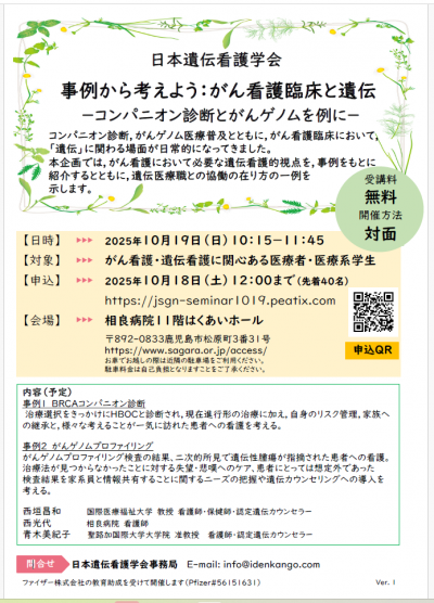 | 対象:がん看護・遺伝看護に関心のある医療者・医療系学生 |