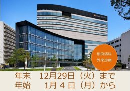 12月30日(水)~ 1月3日(日)の外来診療は休診、年始は1月4日(月)から通常診療となります。