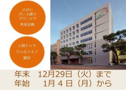 相良病院、さがらパース通りクリニックの年末の外来診療は、12月29日(火)までです。