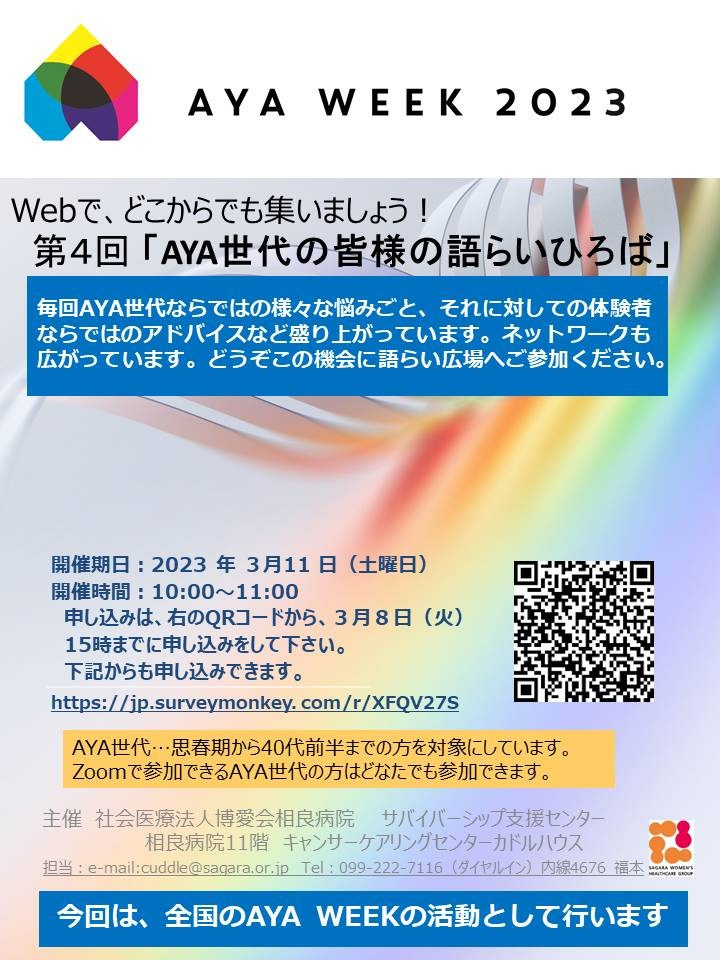 申込終了【Web開催】第4回「AYA世代の皆様の語らいひろば」