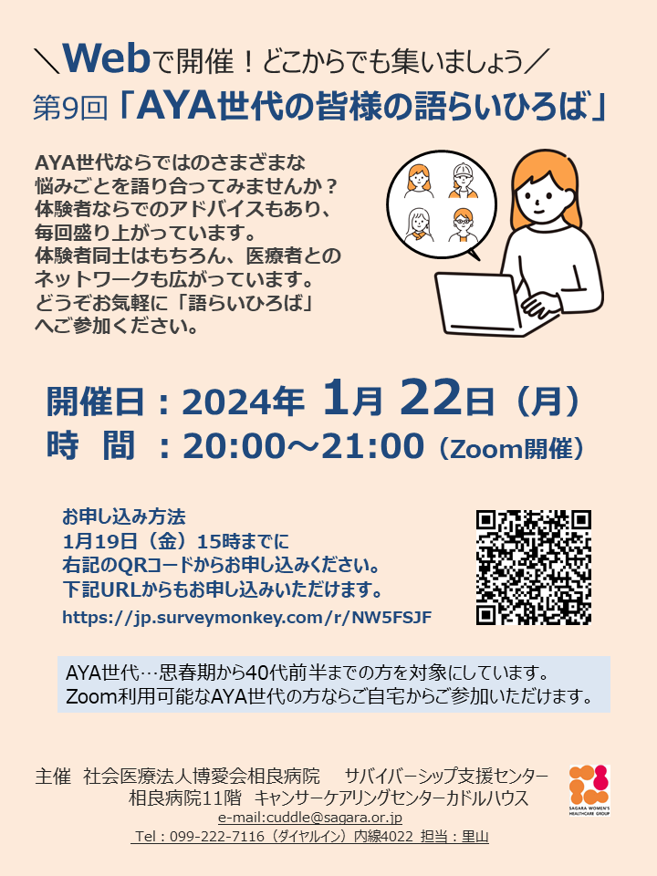 【申込受付終了】第9回「AYA世代の皆様の語らいひろば」