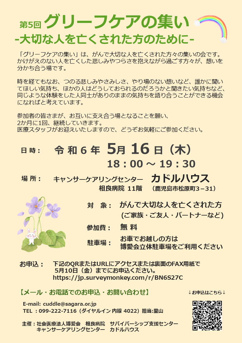 【申込受付終了】5/16 第5回 グリーフケアの集い