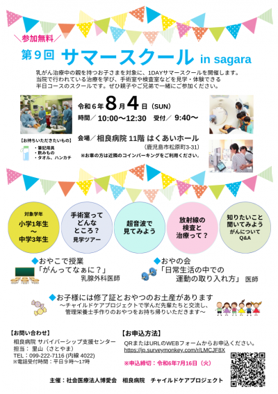 乳がん治療中の親を持つ小中学生のお子さまを対象に、1DAY サマースクールを開催します。