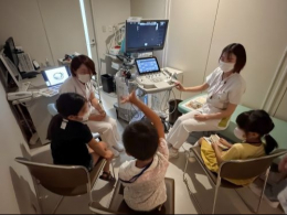 続いて子どもたちは、3つのグループに分かれて院内探検へ。術衣に着替えて手術室へ潜入したり、放射線・超音波の画像診断装置を楽しく体験しながら学びました。