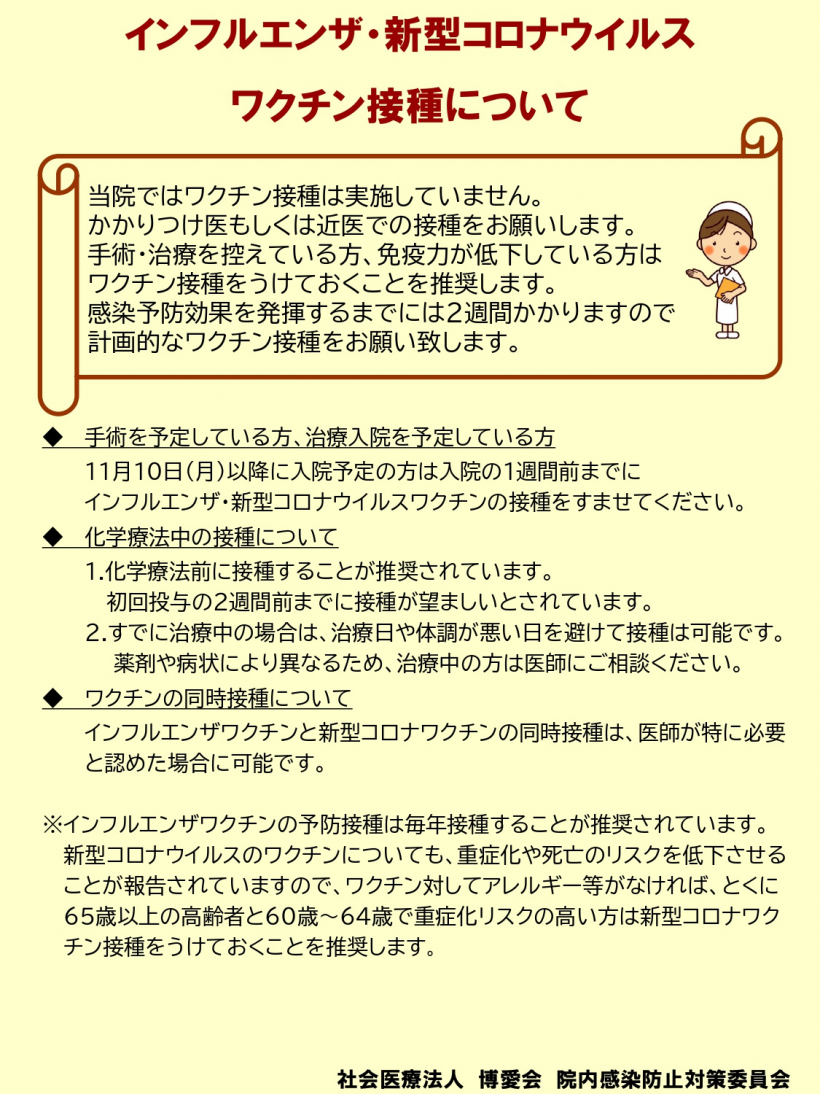 相良病院、さがらパース通りクリニックでは、ワクチン接種は実施しておりません。 かかりつけ医もしくは近医での接種をお願いいたします。