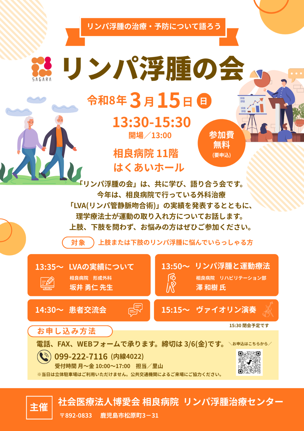 今回は相良病院のLVA(リンパ管静脈吻合術)の実績をご紹介するとともに、理学療法士が運動の取り入れ方についてお話します。