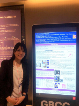 「乳房温存術におけるSuture Scaffold 法を用いた Oncoplastic Surgery」という演題で発表を行った「第18回 日本乳癌学会九州地方会」ではベストプレゼンテーション賞と海外学会参加賞を受賞し、米国サンアントニオ乳がんシンポジウムでポスター発表を行う機会もいただきました。発表したポスターは、2021 JBCS Young Investigator Grant for SABCSを受賞しました。また、論文はAnnals of Surgical Oncologyにアクセプトされ、掲載されました。