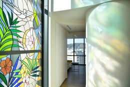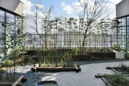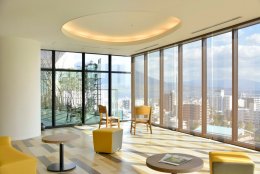 自然の風を感じる空中庭園、錦江湾・桜島・遠くに開聞岳を望む美しい眺望が広がる空間で、ゆったりと景色を眺めたり、ライブラリーにある本を読んだりすることができます。